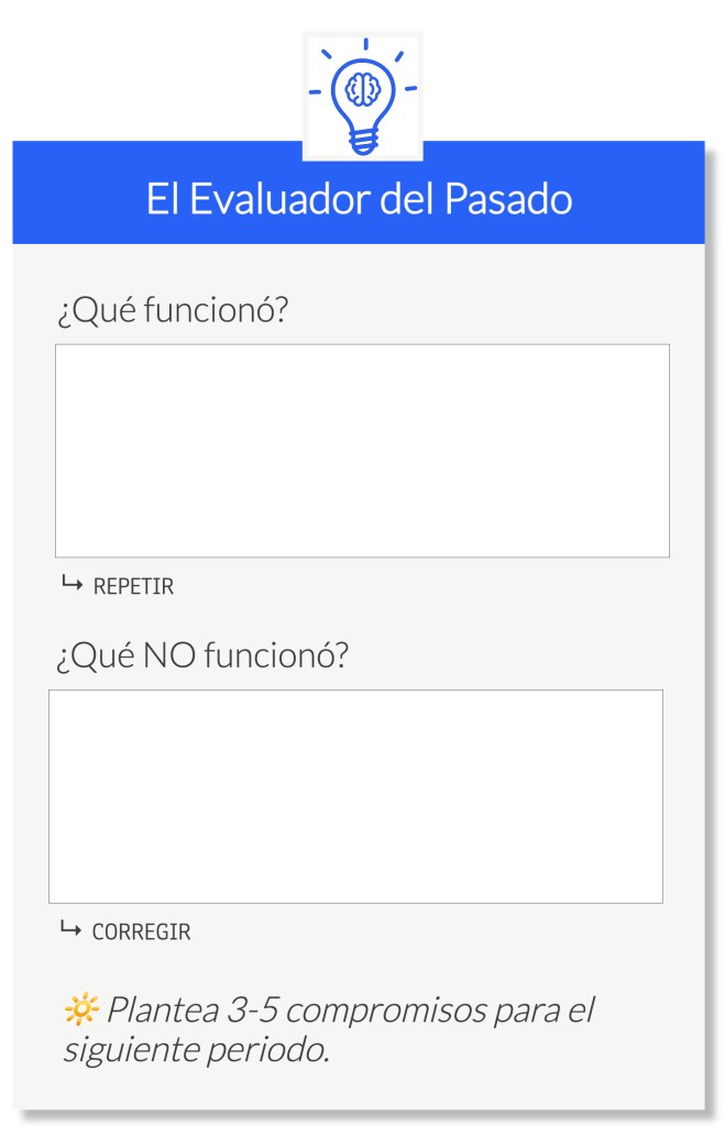Es una herramienta ideal en la preparación previa a la planeación del siguiente año o trimestre, por lo que te recomiendo que la uses no solamente contigo sino también con tu equipo.